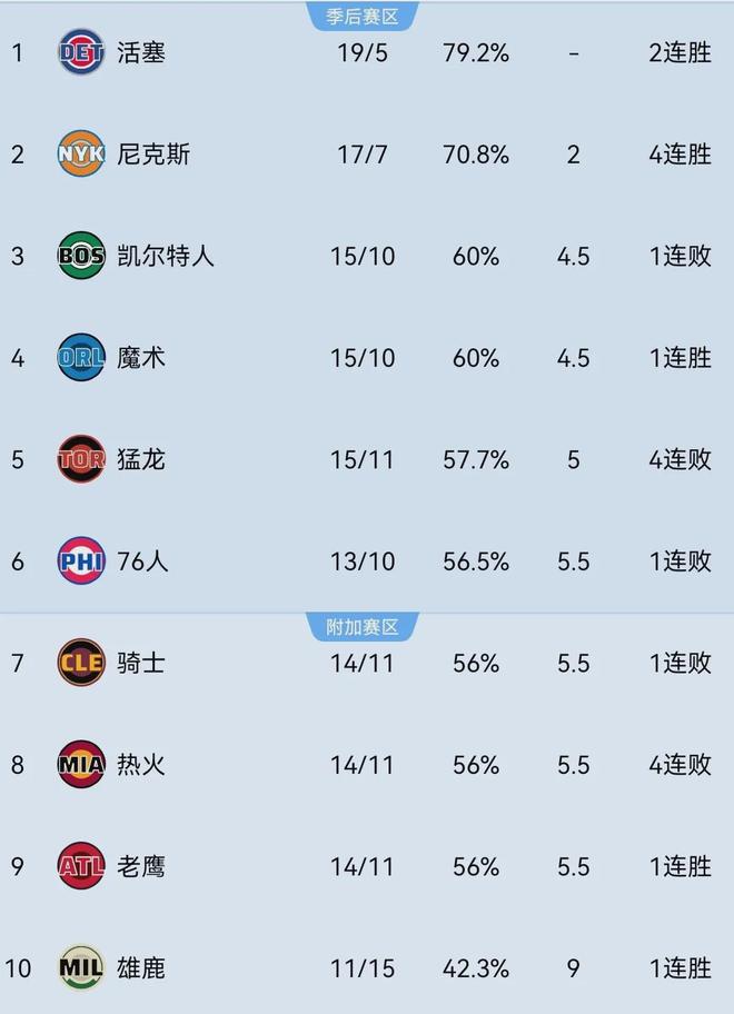 目前为止,雄鹿以11胜15负排名东部第十,凯尔特人则以15胜10负高居东部第三。