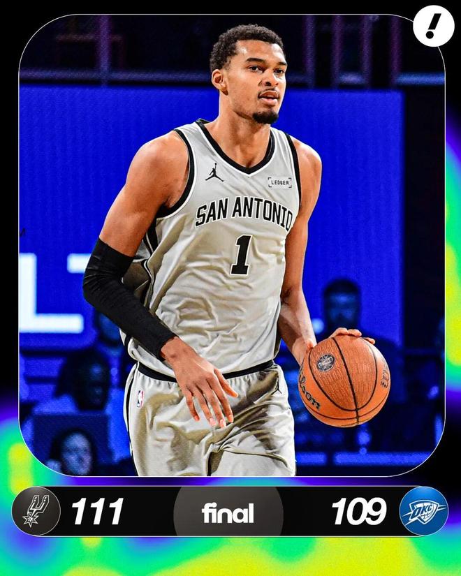 文班亚马22分马刺终结雷霆16连胜,雷霆从此不再孤独