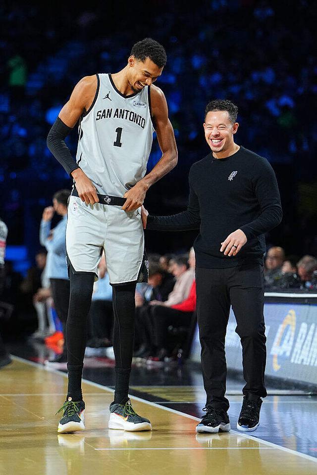 没有让文班亚马首发,甚至在整个第一节都死死把法国“独角兽”死死按在板凳上的选择的确非常冒险,但这却是米奇这位被波波维奇钦点的接班人在现有条件下的最优解。