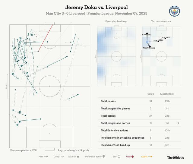北京时间11月10日,英超第11轮,曼城3-0战胜了利物浦,赛后,The Athletic发表专题文章,分析并点评了本场比赛,以下为专题文章。